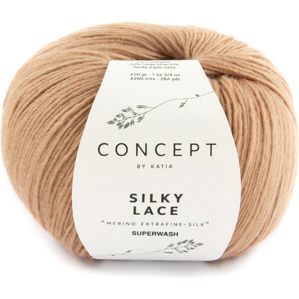 Katian Silky Lace on kaunis ja houkutteleva lanka, joka koostuu silkistä ja merinovillasta. Langan värikartta on hillitty ja käyttömahdollisuudet langalla rajattomat. Huomioithan, että lanka on todella riittoisaa; 50g kerästä löytyy jopa 260 metriä lankaa. Elikkäs kahdella kerällä sinulla on iissoooo huivi ja viidellä olet paukutellut päällesi jo villapaidan.