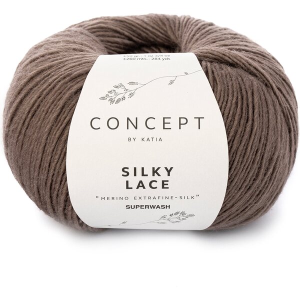 Katian Silky Lace on kaunis ja houkutteleva lanka, joka koostuu silkistä ja merinovillasta. Langan värikartta on hillitty ja käyttömahdollisuudet langalla rajattomat. Huomioithan, että lanka on todella riittoisaa; 50g kerästä löytyy jopa 260 metriä lankaa. Elikkäs kahdella kerällä sinulla on iissoooo huivi ja viidellä olet paukutellut päällesi jo villapaidan.