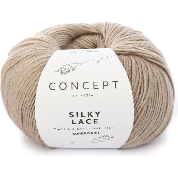 Katian Silky Lace on kaunis ja houkutteleva lanka, joka koostuu silkistä ja merinovillasta. Langan värikartta on hillitty ja käyttömahdollisuudet langalla rajattomat. Huomioithan, että lanka on todella riittoisaa; 50g kerästä löytyy jopa 260 metriä lankaa. Elikkäs kahdella kerällä sinulla on iissoooo huivi ja viidellä olet paukutellut päällesi jo villapaidan.