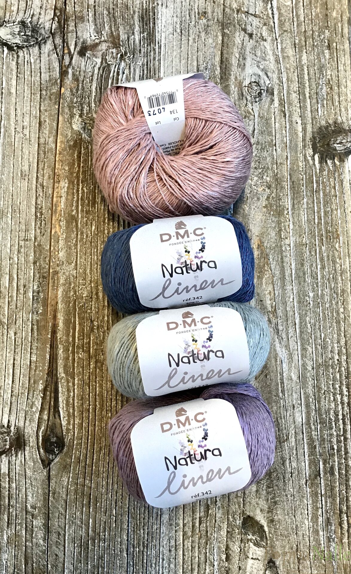 Natura Linen on kaunis, hiukan epätasaiseksi kehrätty pellava sekoitelanka, jossa on himmeä hohde.