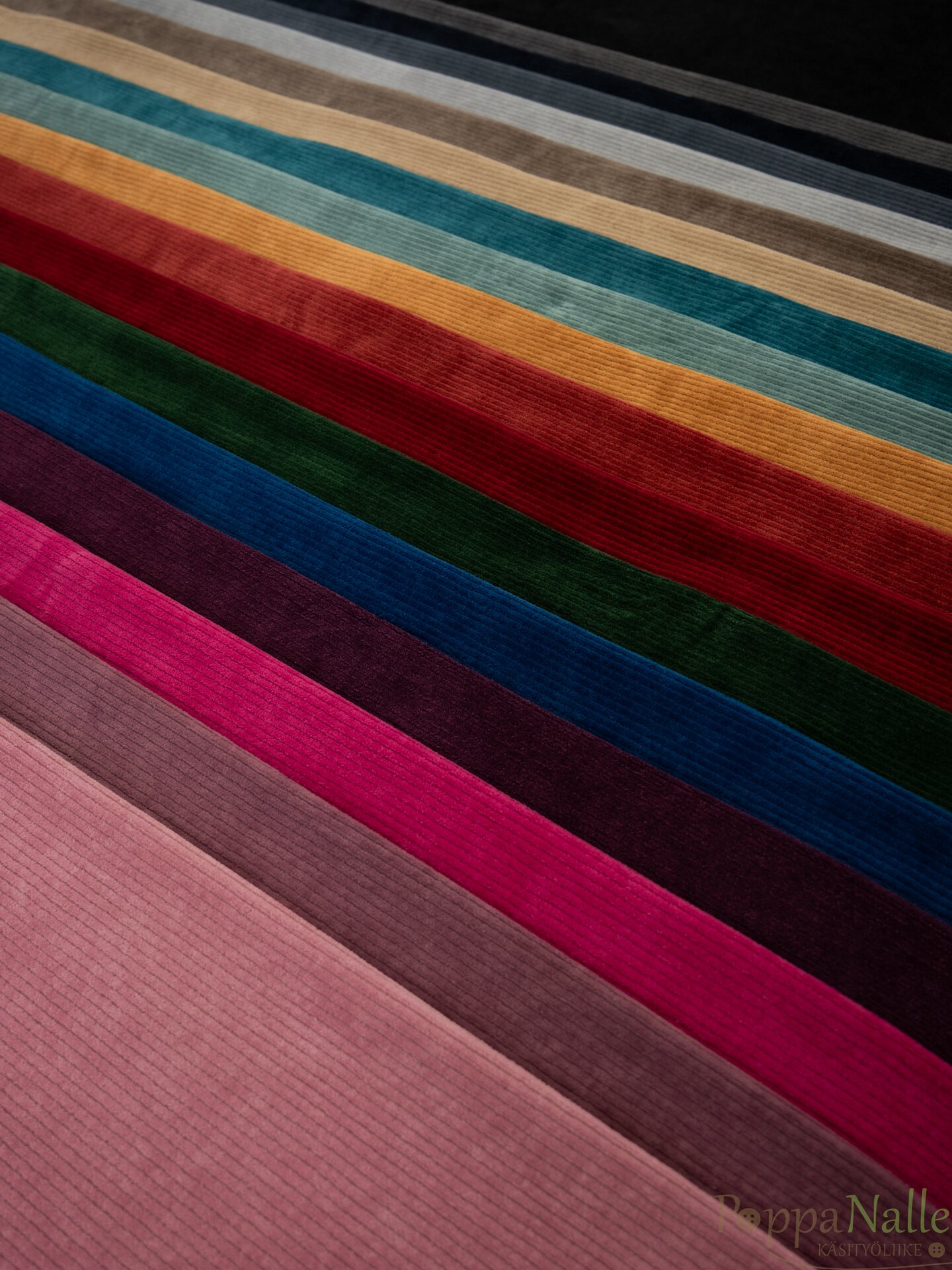 Mukavan joustava samettikangas, joka sopii niin vaatetuskankaaksi kuin sisustustuotteisiinkin. Tästä voi ommella surautella niin housut kuin sohvatyynytkin!