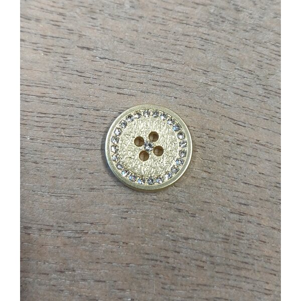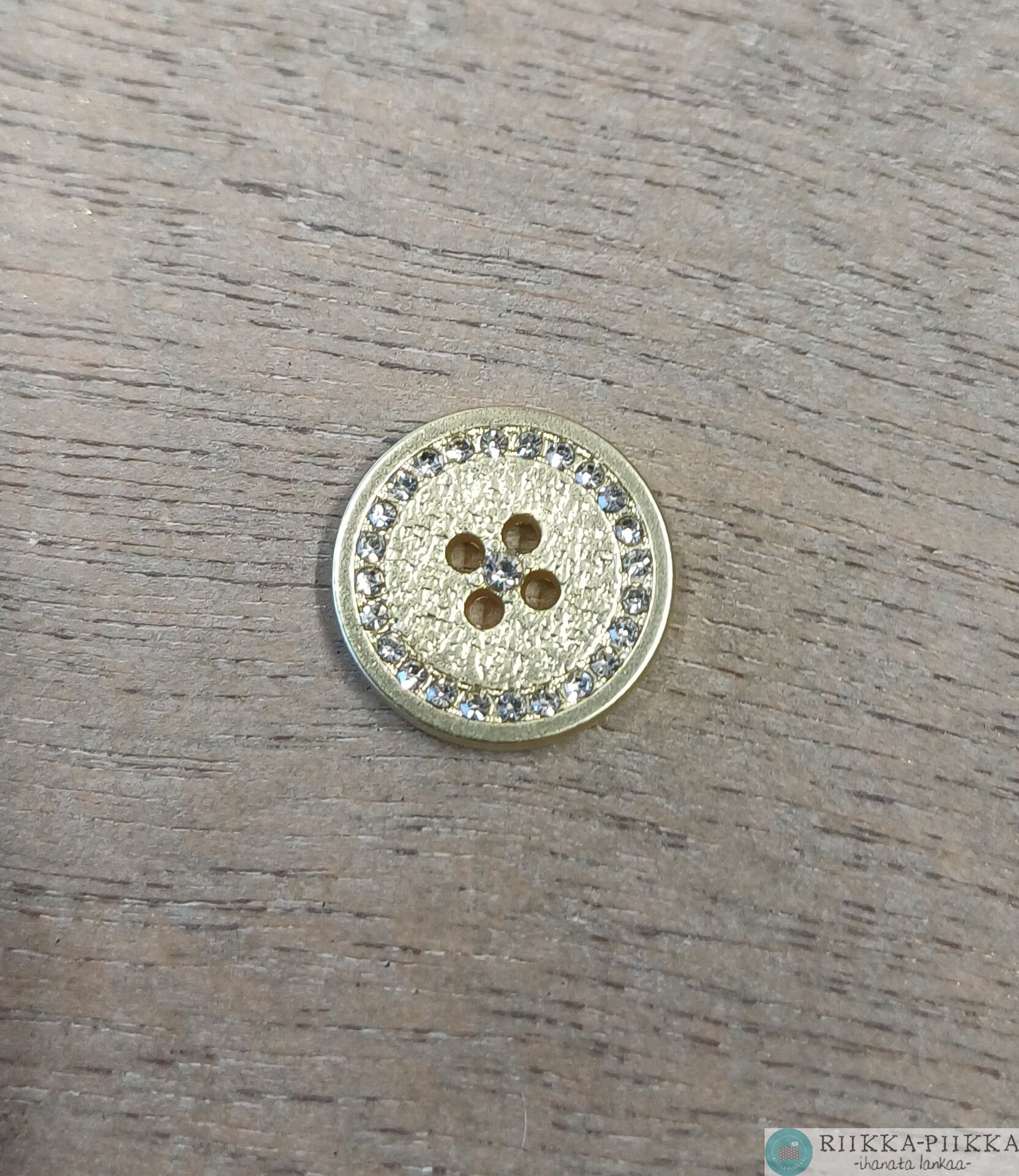 Todella kaunis nelireikäinen kullanvärinen nappi, jossa strassikoristeet.