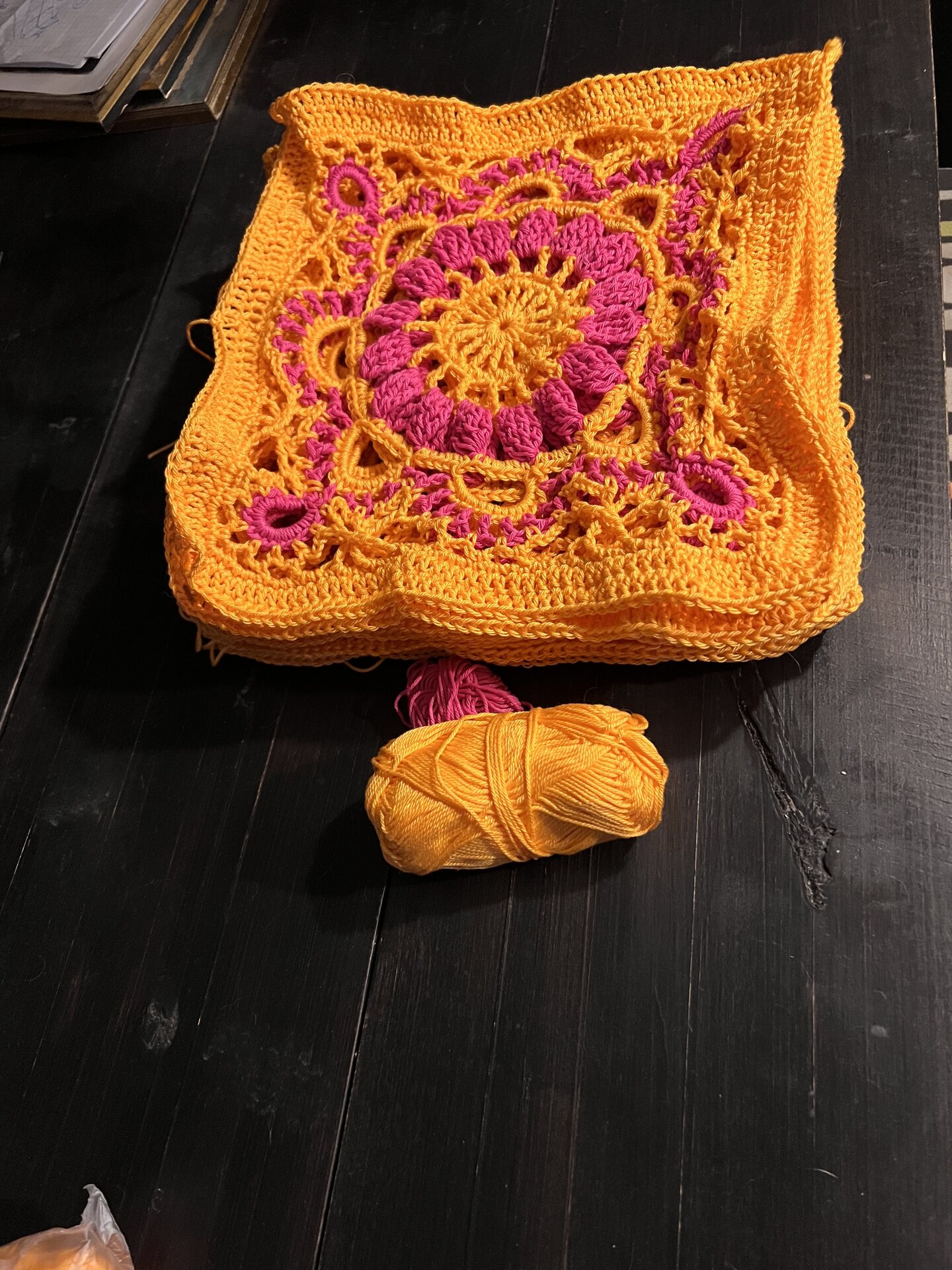 Oranssinkeltainen lanka on ihanan pehmeä ja helppo neuloa. Pinkki taas on hyvin kuivaa ja jäykkää ja vaikeampi työstää. Värit ovat kuitenkin kauniit ja voimakkaat.