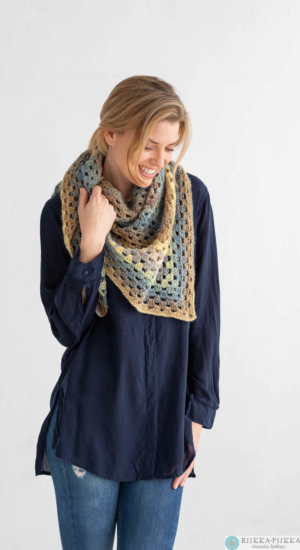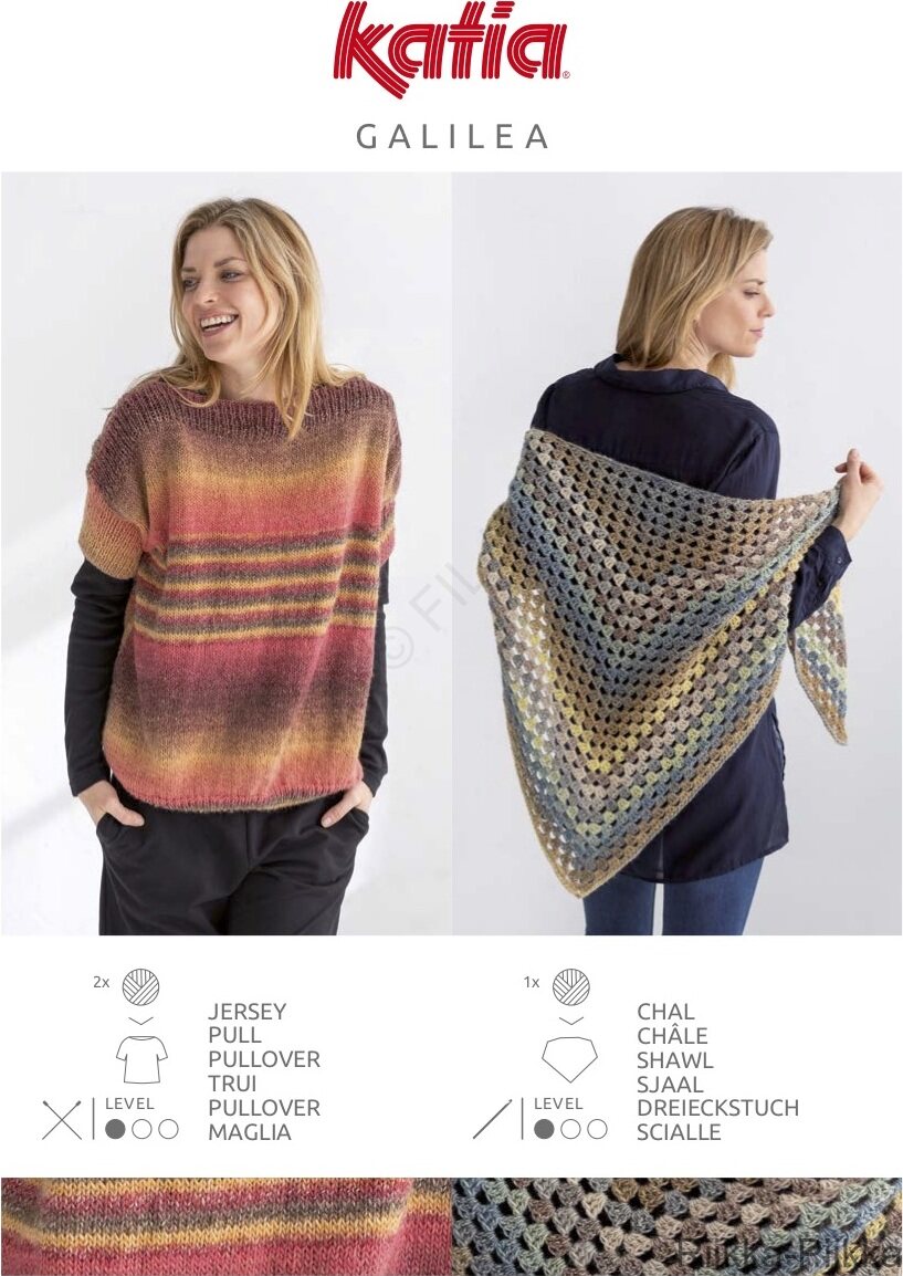 Tarvitset vain 2 kerää Galilea lankaa neuloaksesi ihanan harmonisen värisen ja raidallisen paidan tai ponchon. Yhdellä kerällä neulot tai virkkaat tällä langalla ihanan huivin syksyn viimaa vastaan.