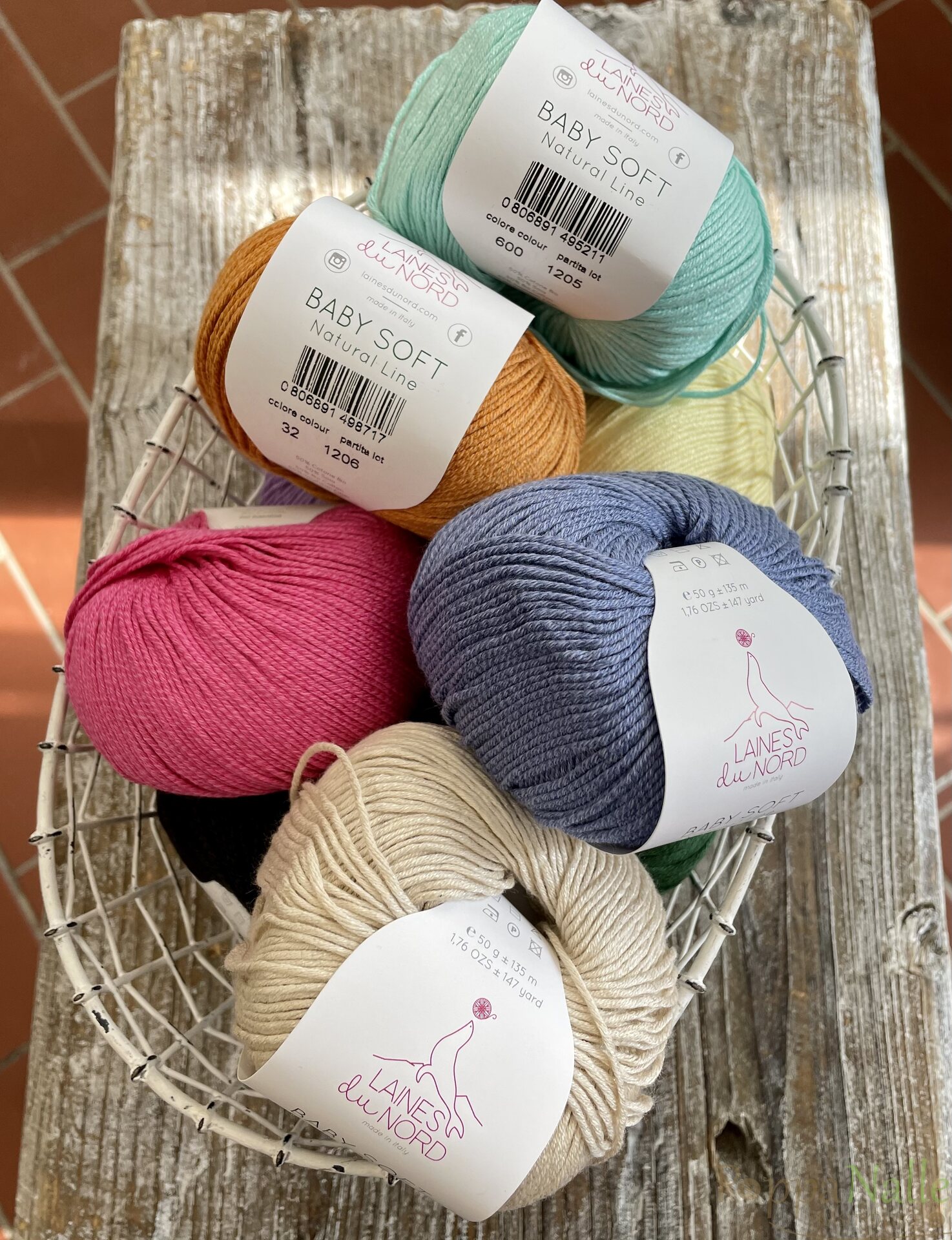 Laines Du Nordin Baby Soft lanka on täydellinen lanka isompien ja pienten kesäneulesiin. Neulotpa tai virkkaat, käytätpä lankaa yksinään tai esim mohairin kanssa tämä lanka sopii tarkoituksiisi täydellisesti. Lanka on luomu puuvillan ja soijan sekoitusta, joka tekee neulospinnasta pehmeää (eikä muutes mitenkään lutteroa vaan), napakkaa ja kaunista. Langassa on himmeä kiilto.