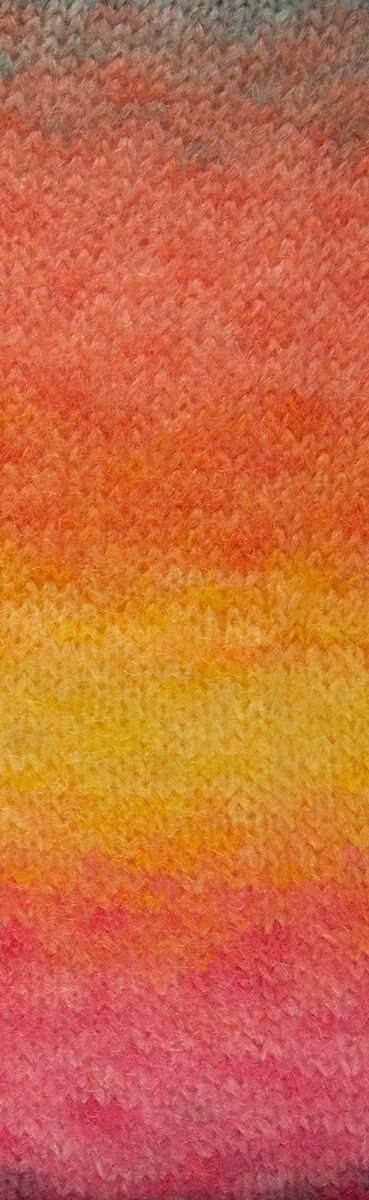 Mohair trend print on mohairin mittapuulla paksuhko, mutta silti hyvin kevyt. Lanka sopii hyvin niin huiveihin, puseroihin kuin takkeihinkin. Lopputulos on tästä upea! Niin hienot on värit tässä!