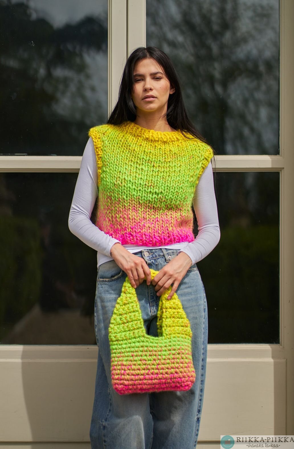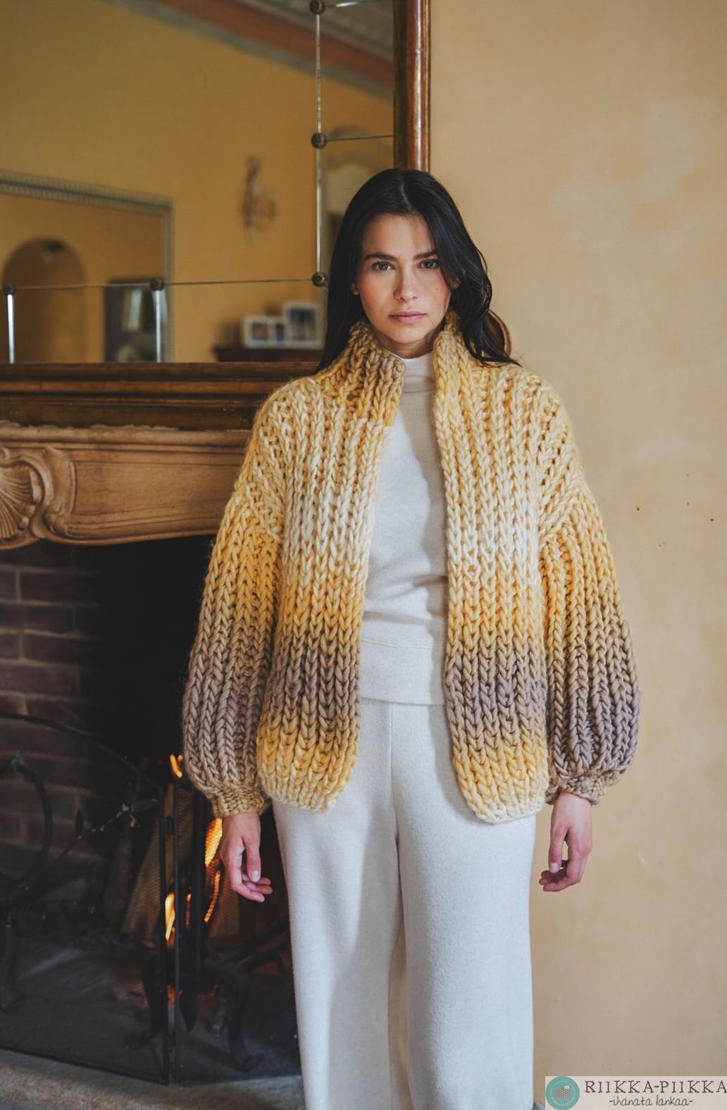 Nimensä mukaisesti on hyvin Chunky eli ei ole mitään rihmalankaa laisinkaan! Tästä langasta valmistuu hetken humauksessa pipo, kauluri tai vaikka trendikäs laukkukin. Paitoihin on paksu, mutta tarvitaanhan toki paksujakin neulepaitoja, eikös niin? Ainakin jos on tarjolla näin upeita värejä. Tuubihuivi tulee yhdestä kerästä, paitaan tarvitset neljä.