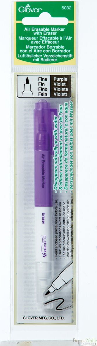 Ohutkärkinen merkkauskynä, jonka jälki häviää itsestään tai veden kanssa. Kynässä on mukana pyyhin.