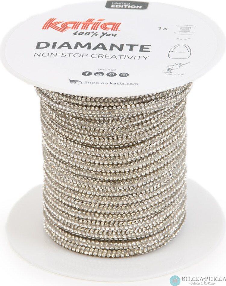 Upeasti kimalteleva nauha monenlaiseen koristeluun. Nauhan ydin on puuvillanyöriä, jonka päällä on pienen pieniä kimaltavia kristalleja.