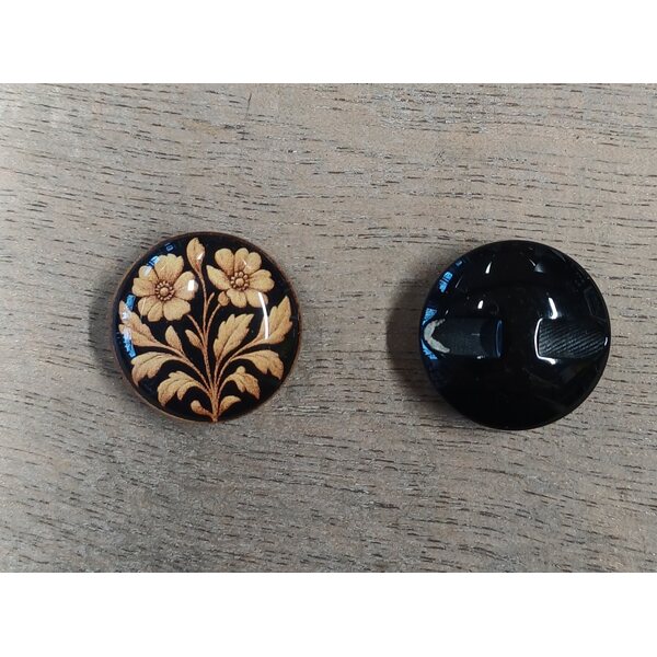 Kaunis kiiltävä kukkakuvioinen nappi, joka ei varmasti jää huomaamatta!